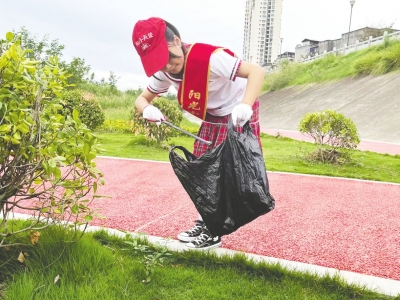 當(dāng)天上午,30余名小小志愿者穿著紅馬甲、頭戴小紅帽,在草叢、灌木叢中清理垃圾,以實際行動護(hù)衛(wèi)“母親河”流域生態(tài)環(huán)境。