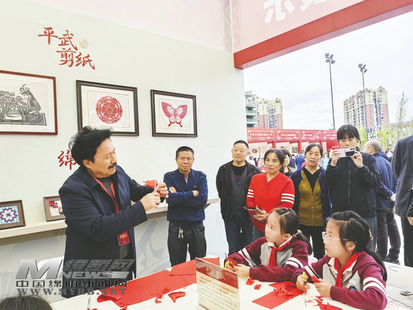 在非遺進校園成果展現(xiàn)場,集中展示了近年來綿陽非遺進校園取得的成果及活動圖像,平武剪紙傳承人謝成飛向到場的市民開展剪紙培訓(xùn)教學(xué)。接下來幾天,鑫田糧藝、三臺剪紙、羌族草編、綿陽拼布等項目傳承人也將開展現(xiàn)場培訓(xùn)教學(xué)。