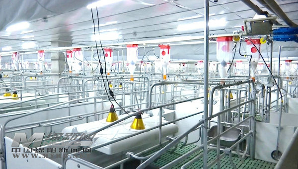 在鵝溪鎮(zhèn)劍河村新希望公司豬場的圈舍里,自動化喂料飲水系統(tǒng)、自動控溫系統(tǒng)、自動清糞系統(tǒng)、環(huán)控系統(tǒng)等配套設施一應俱全。
