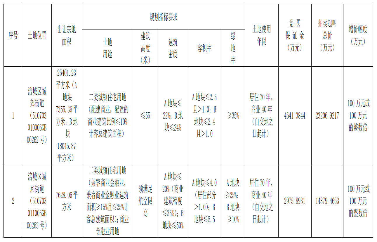 拍賣出讓地塊的基本情況和土地利用指標(biāo)要求