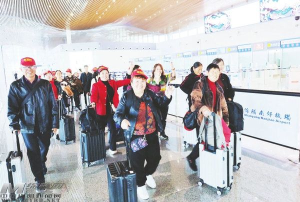 10月26日,德陽的游客從綿陽機場出發(fā)前往北京。