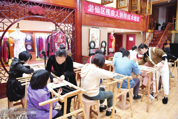 綿陽新聞網訊 窗外細雨霏霏,室內飛針走線,近日,在游仙區(qū)殘聯主辦的殘疾人刺繡技能免費培訓班上,10余位學員正在西蜀傳統刺繡工藝非遺傳承人周靜老師的精心指導下認真學習蜀繡技法。