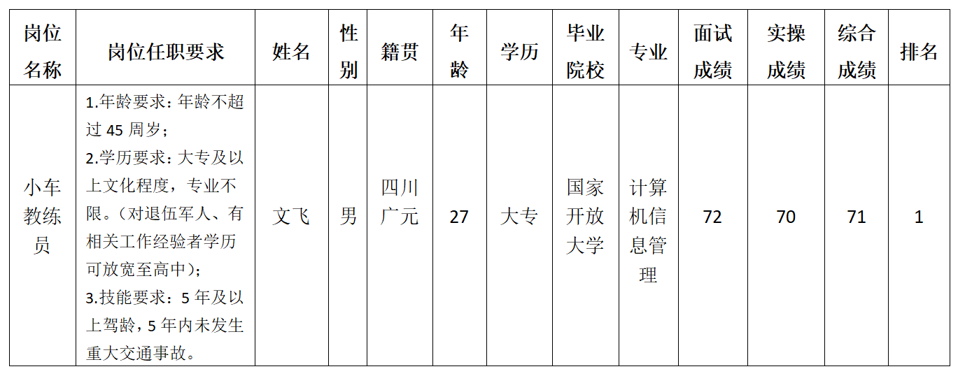 根據(jù)綿實股份發(fā)布的招聘公告及招聘相關規(guī)定,經(jīng)面試、實操等程序,現(xiàn)將面試、實操成績予以公示。
