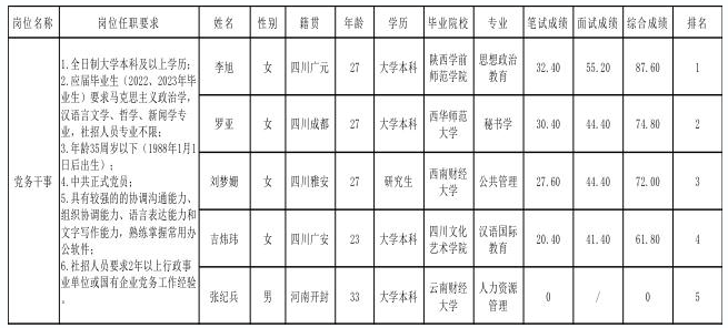 根據(jù)綿陽市水利規(guī)劃設(shè)計(jì)研究院有限公司發(fā)布的招聘公告及招聘相關(guān)規(guī)定,經(jīng)筆試、面試等程序,現(xiàn)將筆試、面試成績予以公示。