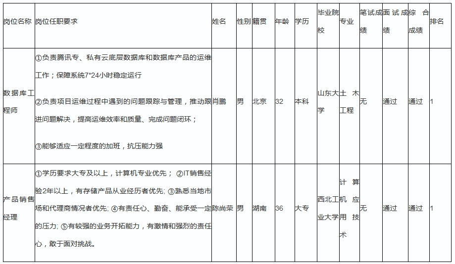 根據(jù)四川長虹佳華信息產(chǎn)品有限責(zé)任公司發(fā)布的招聘公告及招聘相關(guān)規(guī)定,經(jīng)筆試、面試等程序,現(xiàn)將筆試(面試)成績予以公示。