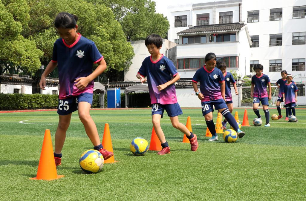 2022年7月15日,江蘇省蘇州市昇平實(shí)驗(yàn)小學(xué)校的女足隊(duì)員在訓(xùn)練中。新華社發(fā)(杭興微 攝)