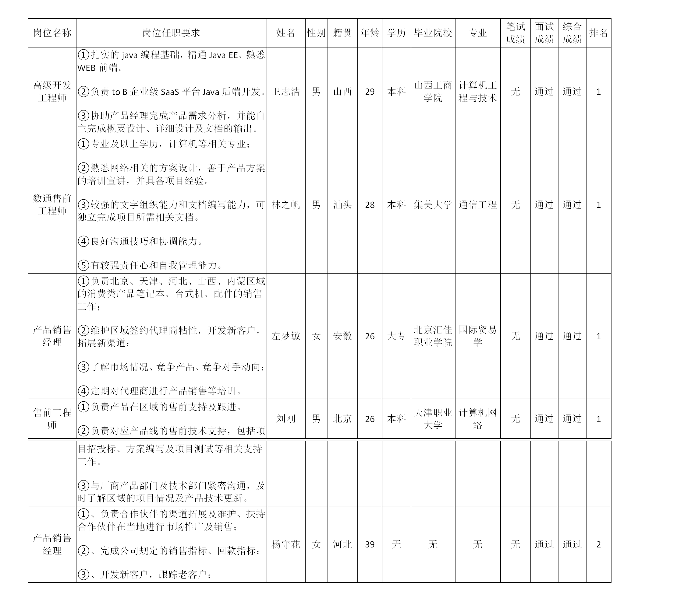 根據(jù)四川長虹佳華信息產(chǎn)品有限責任公司發(fā)布的招聘公告及招聘相關規(guī)定,經(jīng)筆試、面試等程序,現(xiàn)將筆試(面試)成績予以公示。