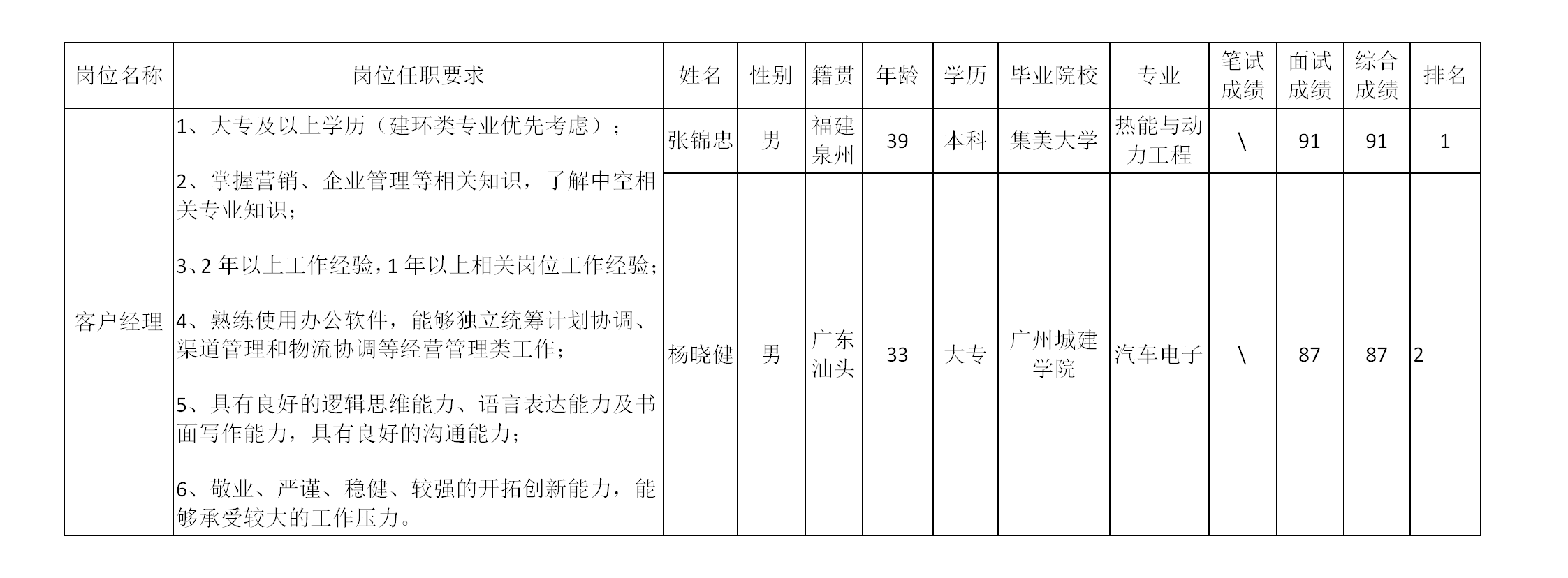 根據(jù)長(zhǎng)虹空調(diào)公司發(fā)布的招聘公告及招聘相關(guān)規(guī)定,經(jīng)筆試、面試等程序,現(xiàn)將筆試(面試)成績(jī)予以公示。