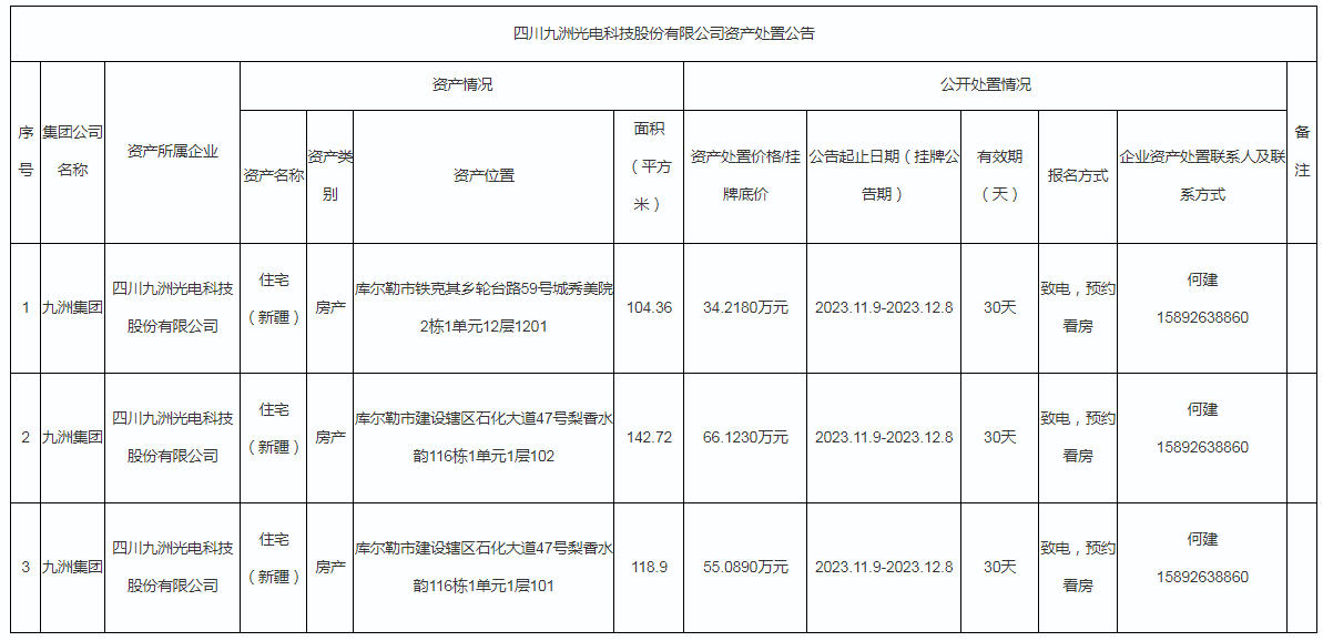 四川九洲光電科技股份有限公司資產(chǎn)處置公告