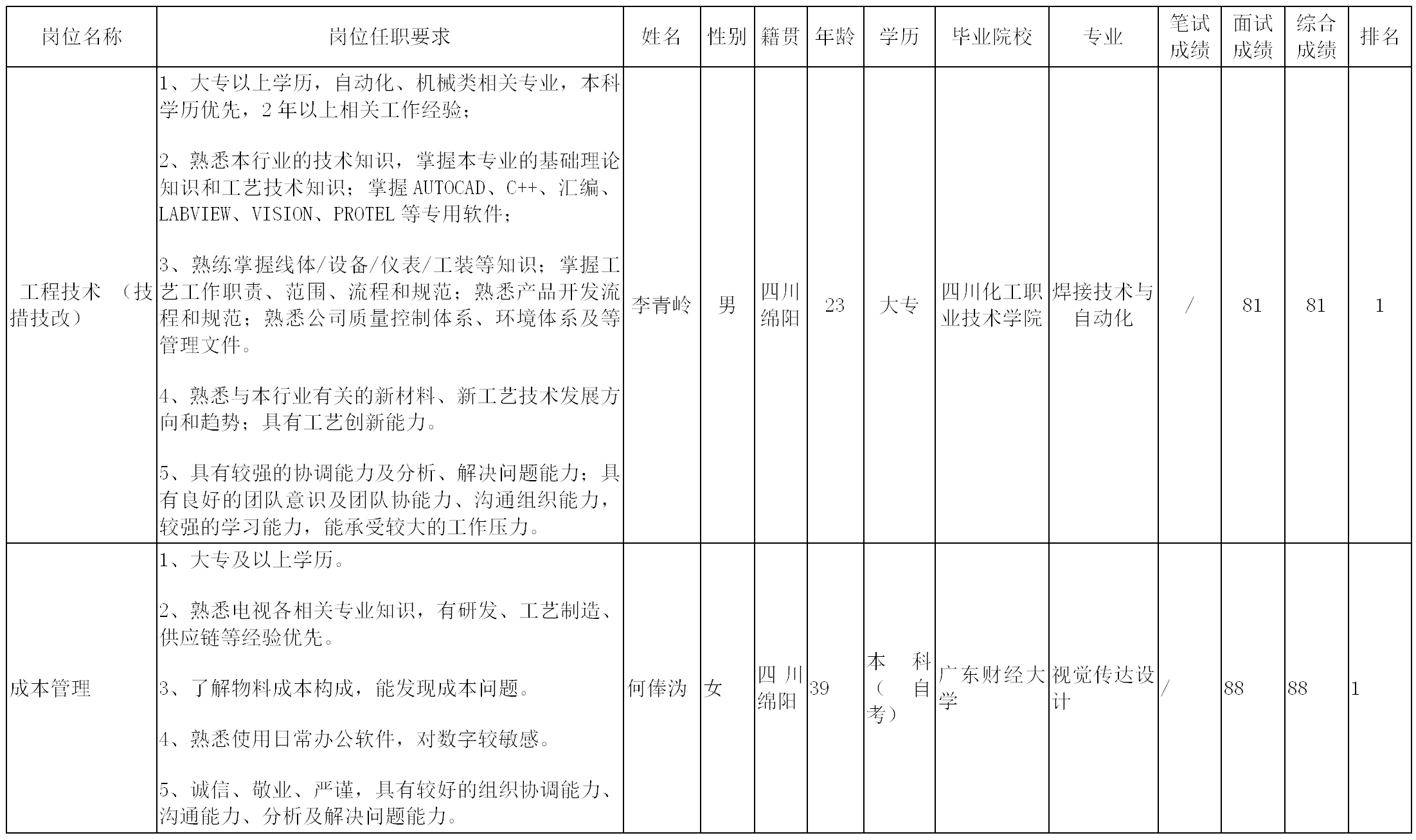 根據(jù)多媒體產(chǎn)業(yè)公司發(fā)布的招聘公告及招聘相關(guān)規(guī)定,經(jīng)筆試、面試等程序,現(xiàn)將筆試(面試)成績(jī)予以公示。