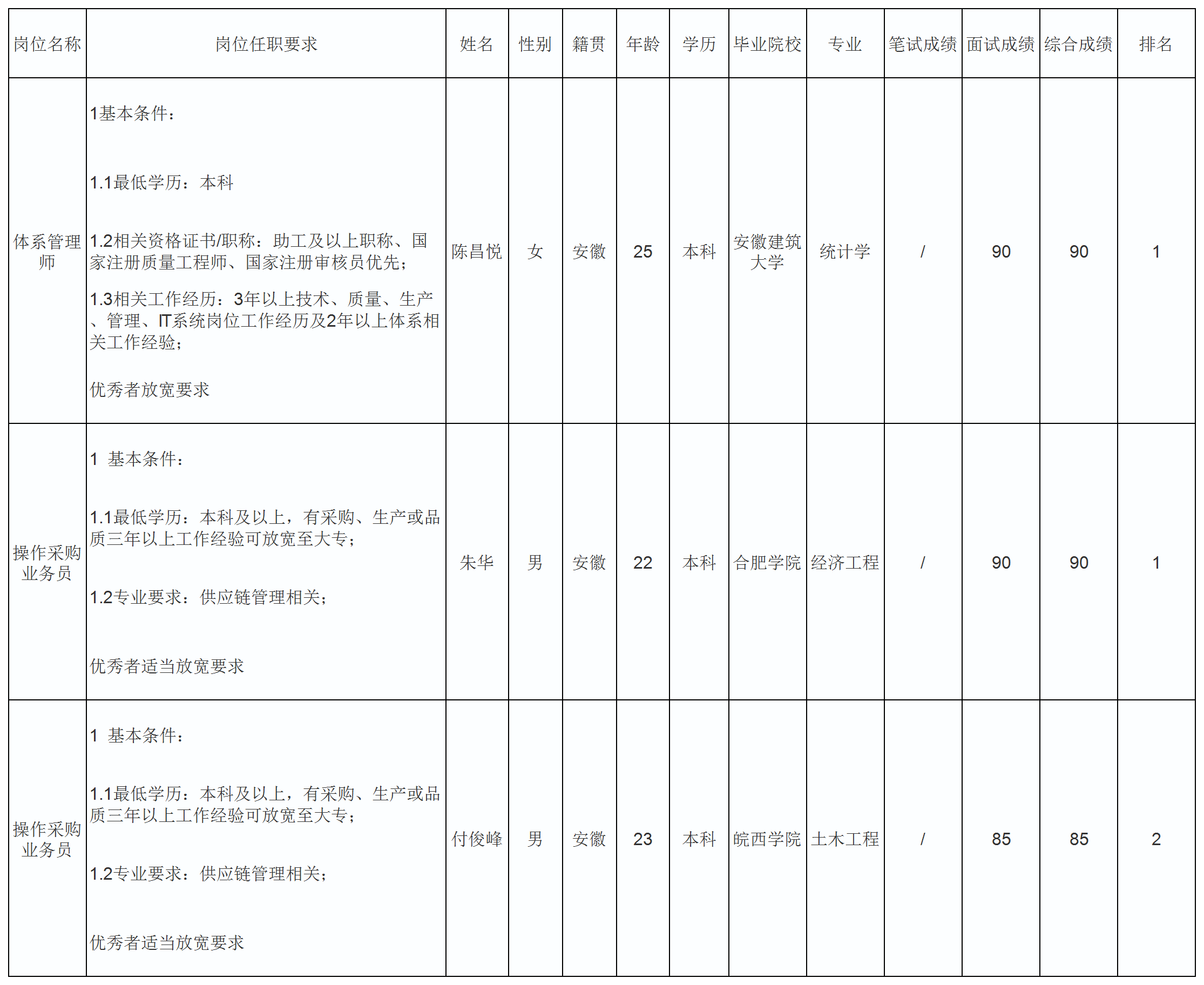 根據(jù)長(zhǎng)虹美菱股份有限公司發(fā)布的招聘公告及招聘相關(guān)規(guī)定,經(jīng)面試等序,現(xiàn)將面試成績(jī)予以公示。