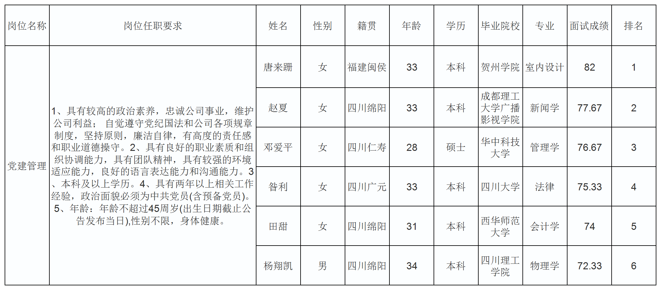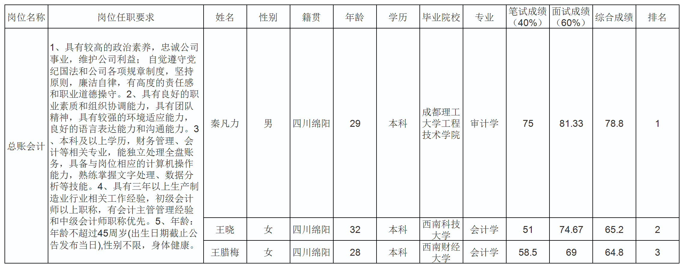 根據(jù)中國重汽集團綿陽專用汽車有限公司發(fā)布的招聘公告及招聘相關(guān)規(guī)定,經(jīng)筆試、面試程序,現(xiàn)將筆試、面試成績予以公示。