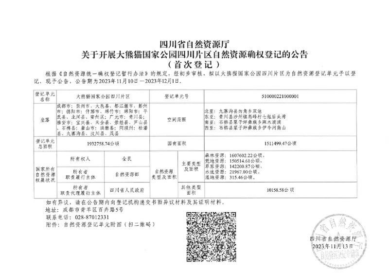 四川省自然資源廳 關(guān)于開展大熊貓國(guó)家公園四川片區(qū)自然資源確權(quán)登記的公告(首次登記)