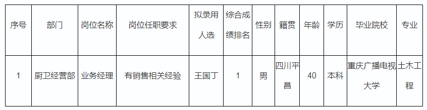 根據(jù)合肥長虹美菱生活電器有限公司發(fā)布的招聘公告及招聘相關(guān)規(guī)定,經(jīng)筆試、面試、考察、體檢等程序,擬錄用陳洋等同志到合肥長虹美菱生活電器有限公司工作,現(xiàn)予以公示,具體情況如下: