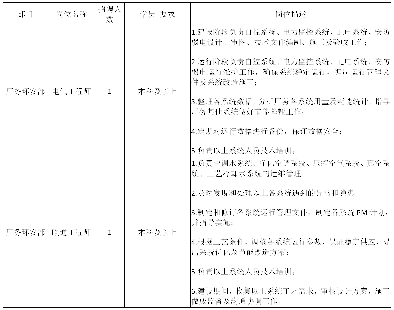 ?。?)具有芯片制造、芯片封測、新能源、醫(yī)藥、面板等行業(yè)廠務(wù)暖通運(yùn)維管理或施工管理經(jīng)驗(yàn)5年以上;