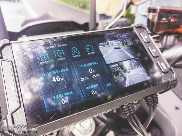 岳應(yīng)輝介紹,傳統(tǒng)的違停錄入需要人工取證、貼單,再上傳數(shù)據(jù),過程比較繁瑣。數(shù)字鐵騎革新后更加智能便捷,節(jié)省人力和時間,可謂是疏堵保暢利器。