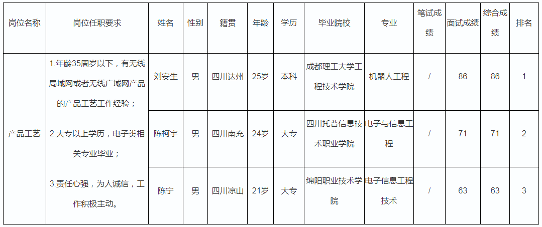 根據(jù)四川愛聯(lián)科技股份有限公司發(fā)布的招聘公告及招聘相關(guān)規(guī)定,經(jīng)面試等程序,現(xiàn)將面試成績予以公示。