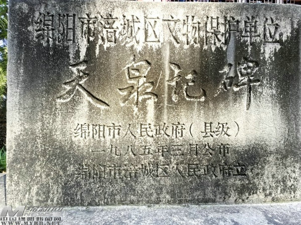 在綿陽南山白衣庵內(nèi),保存著一通明代《天泉記》碑刻。碑刻立于明嘉靖二十二年(1543年),由明代綿州進士汪東洋題額、高第撰文、胡汝翼書寫,碑刻的背面有明嘉靖二十年(1541年)高簡撰寫的《名賢遺詠》,清同治五年(1866年)吳開聰重書《天泉記》碑的跋語。在一通石碑上,留下三個不同時期、五位地方名士的文字,足顯《天泉記》碑刻的珍貴之處。1985年,《天泉記》碑刻被公布為縣級文物保護單位。