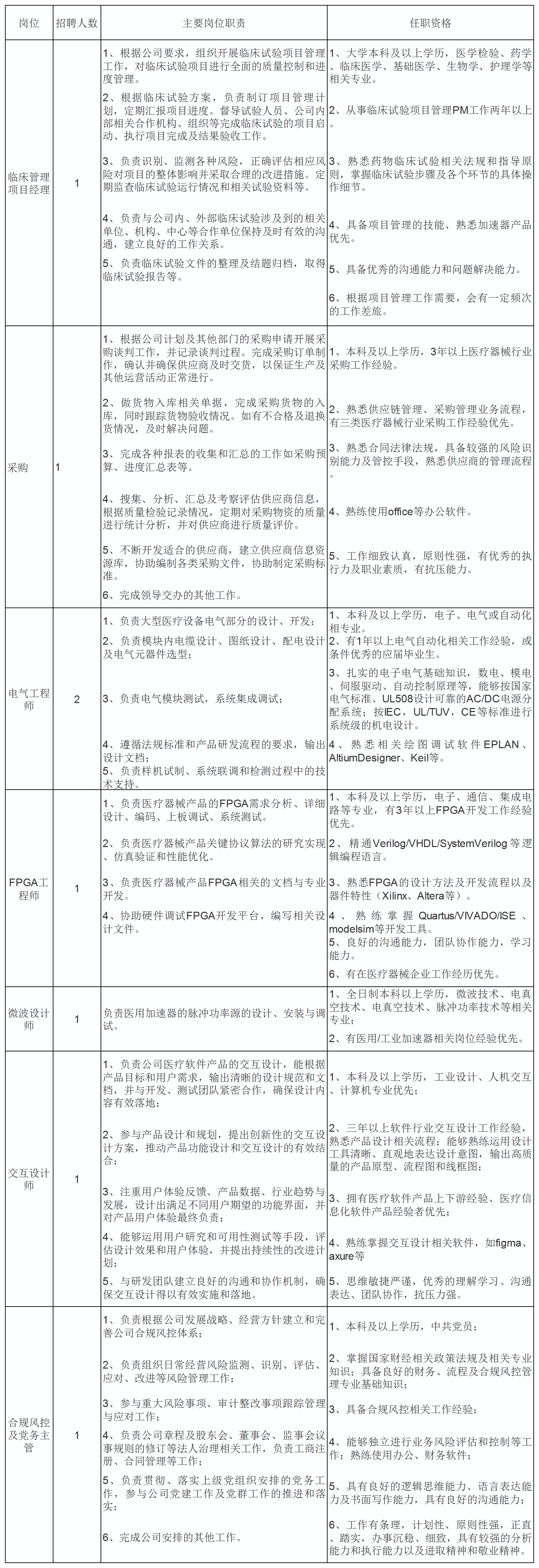 現(xiàn)因公司經(jīng)營發(fā)展需要,現(xiàn)面向長虹控股集團(tuán)內(nèi)、外部誠聘臨床管理項目經(jīng)理、采購、電氣工程師、FPGA工程師、微波設(shè)計師、交互設(shè)計師、合規(guī)風(fēng)控及黨務(wù)等崗位人員,具體崗位招聘信息公告如下: