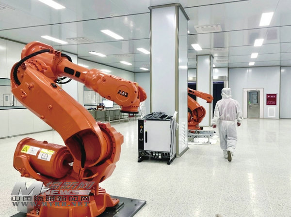 走進(jìn)示潤智慧顯示終端智能制造總部項目生產(chǎn)車間,各條生產(chǎn)線快速運(yùn)轉(zhuǎn),橙色機(jī)器人一刻不停地?fù)]舞著機(jī)械手臂作業(yè),工人們身穿白色防塵服,熟練地進(jìn)行檢測,生產(chǎn)出應(yīng)用于各種顯示終端設(shè)備的玻璃蓋板、TP(觸摸屏)。