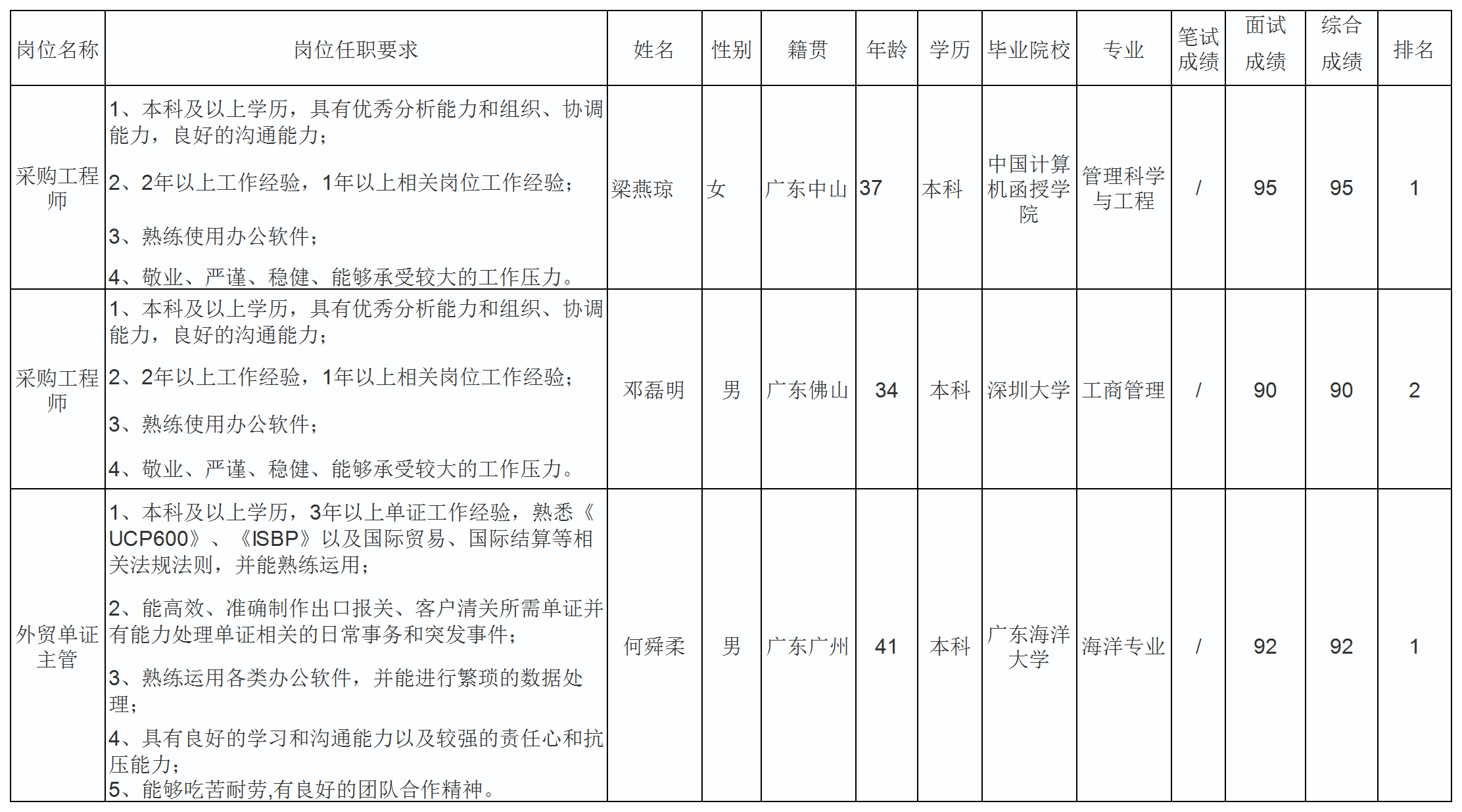 根據(jù)廣東長虹電子有限公司發(fā)布的招聘公告及招聘相關(guān)規(guī)定,經(jīng)面試等程序,現(xiàn)將面試成績予以公示。