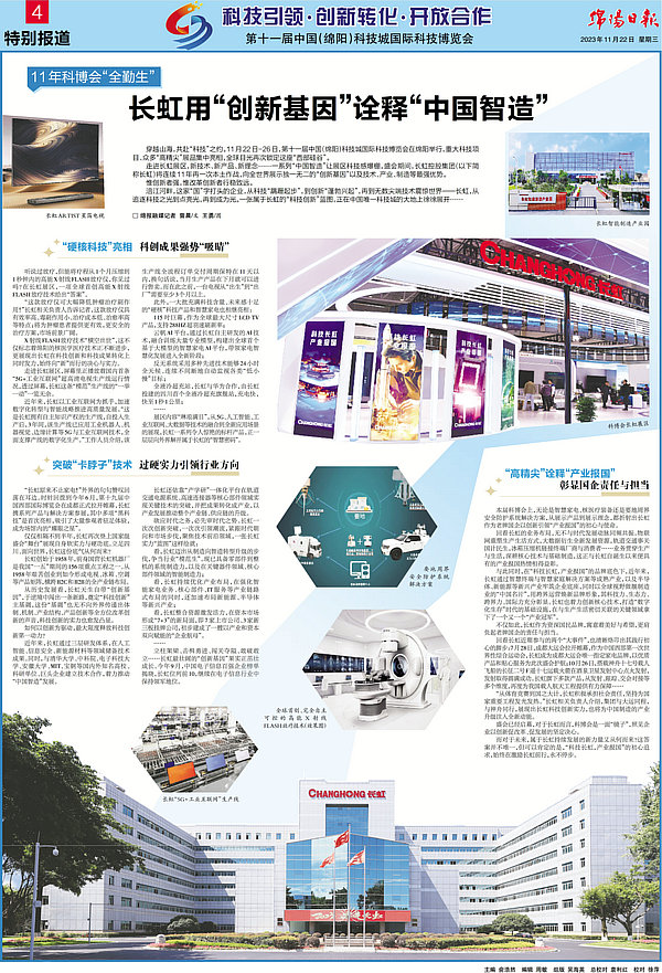 本屆科博會上,無論是智慧家電、核醫(yī)療裝備還是要地周界安全防護系統(tǒng)解決方案,從展示產(chǎn)品到展示理念,都折射出長虹作為老牌國企以創(chuàng)新引領(lǐng)“產(chǎn)業(yè)報國”的初心與使命。