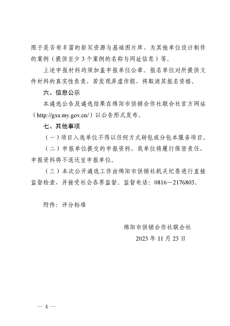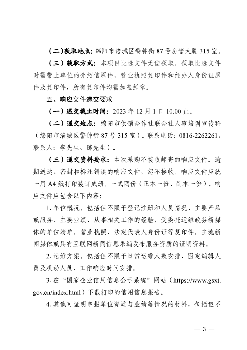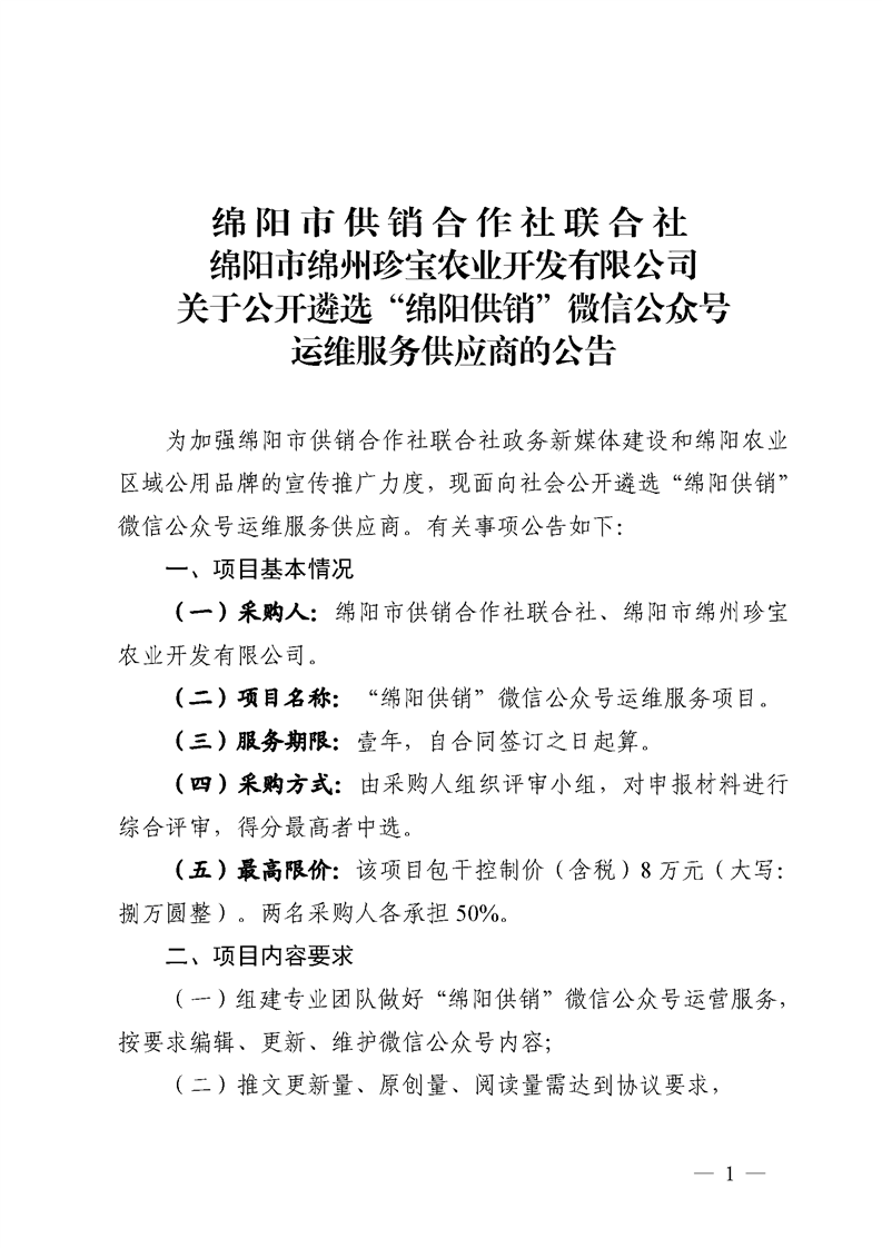 綿陽(yáng)市供銷(xiāo)合作社聯(lián)合社關(guān)于公開(kāi)遴選“綿陽(yáng)供銷(xiāo)”微信公眾號(hào)運(yùn)維服務(wù)供應(yīng)商的公告