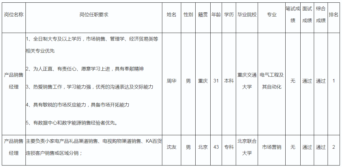 根據(jù)四川長虹佳華信息產(chǎn)品有限責(zé)任公司發(fā)布的招聘公告及招聘相關(guān)規(guī)定,經(jīng)筆試、面試等程序,現(xiàn)將筆試(面試)成績予以公示。