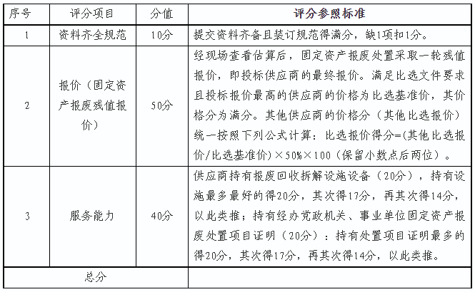 比選評(píng)審主要采用競(jìng)爭(zhēng)性談判方式,以評(píng)審組人員評(píng)分為依據(jù),得分最高的為項(xiàng)目中標(biāo)供應(yīng)商,當(dāng)場(chǎng)宣布結(jié)果。評(píng)分明細(xì)如下: