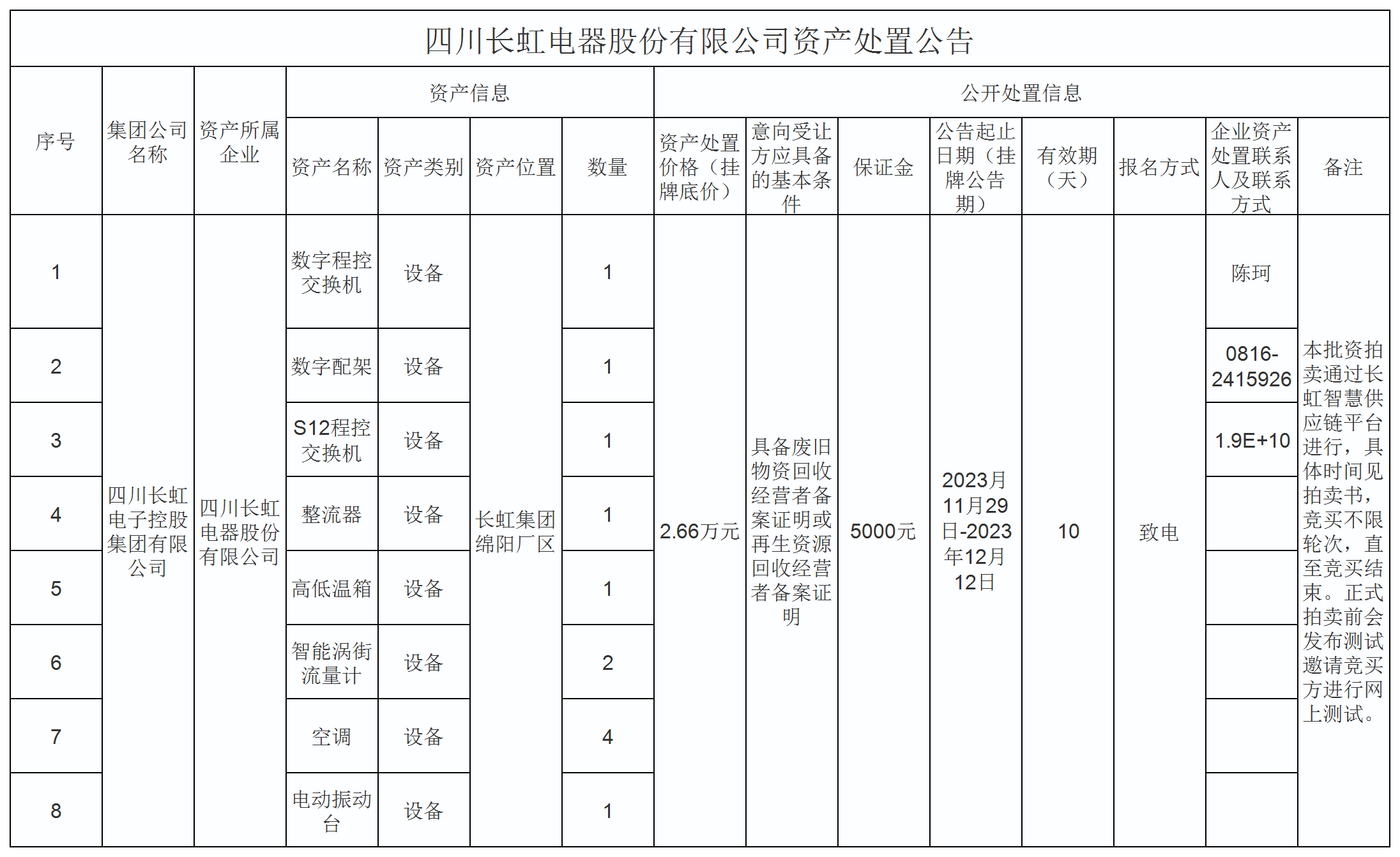 四川長虹電器股份有限公司資產(chǎn)處置公告