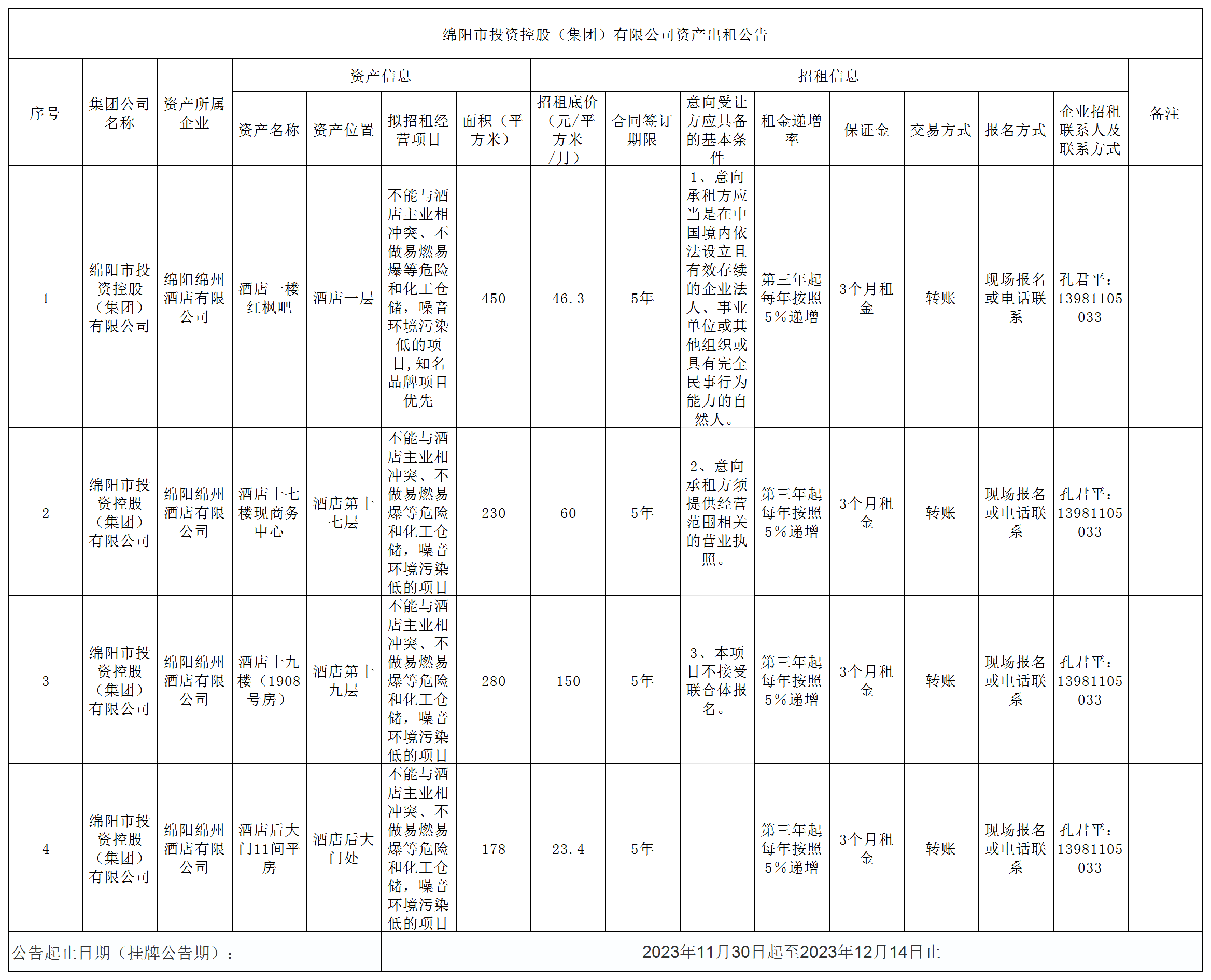 綿陽(yáng)市投資控股(集團(tuán))有限公司資產(chǎn)出租公告