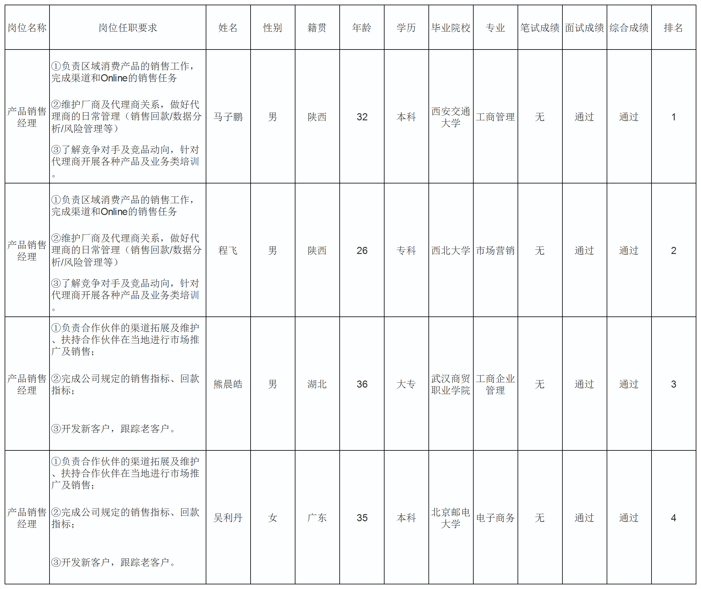 根據(jù)四川長虹佳華信息產(chǎn)品有限責任公司發(fā)布的招聘公告及招聘相關規(guī)定,經(jīng)筆試、面試等程序,現(xiàn)將筆試(面試)成績予以公示。