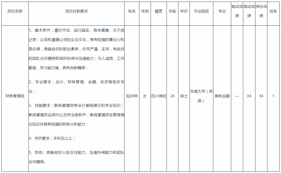 根據(jù)四川九洲投資控股集團(tuán)有限公司發(fā)布的招聘公告及招聘相關(guān)規(guī)定,經(jīng)筆試、面試等程序,現(xiàn)將筆試(面試)成績(jī)予以公示。