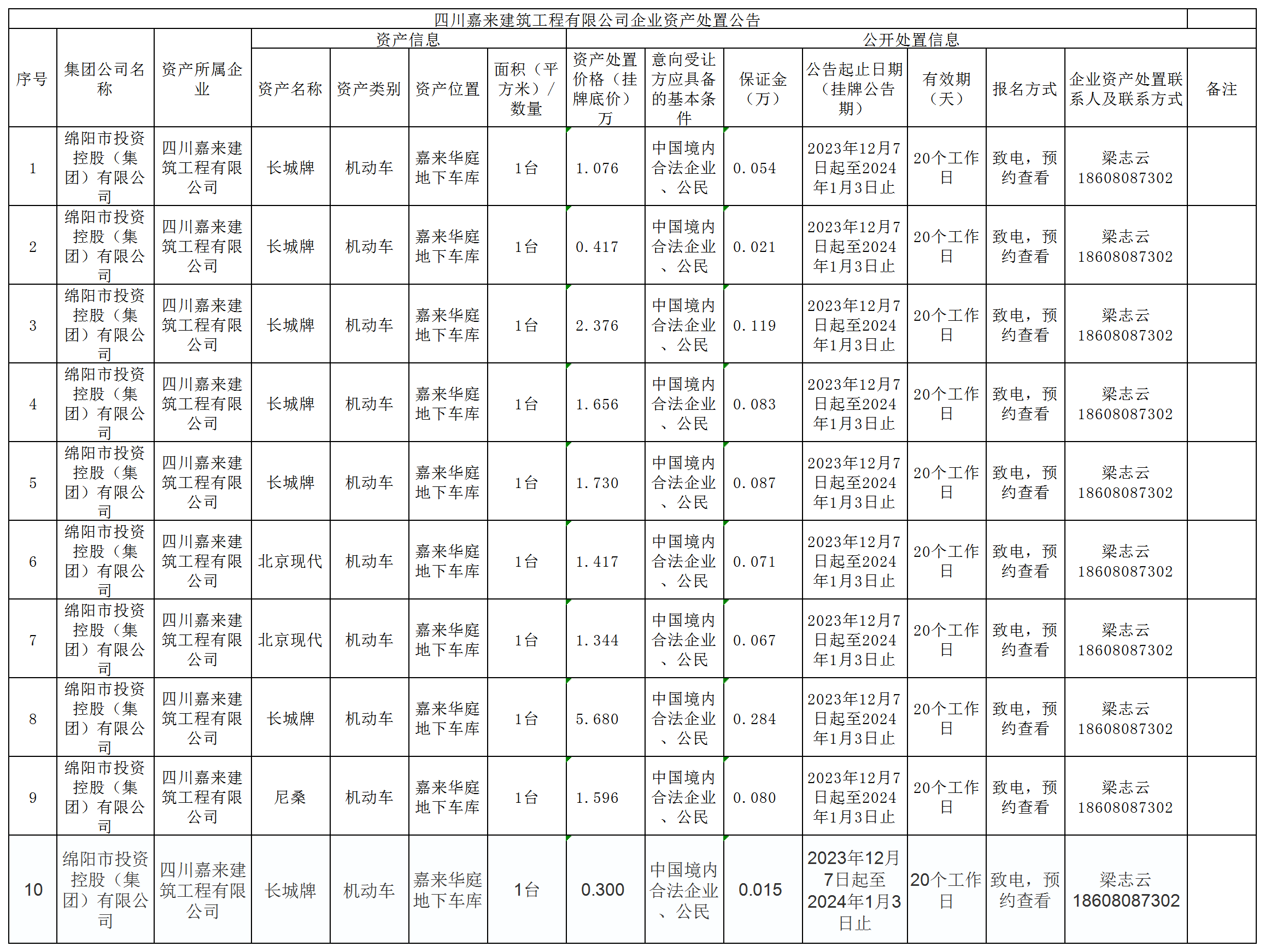四川嘉來建筑工程有限公司企業(yè)資產(chǎn)處置公告
