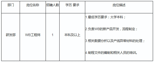 (1)具備3年及以上WB工作經(jīng)驗,有KNS設(shè)備維護和程序管理經(jīng)驗;