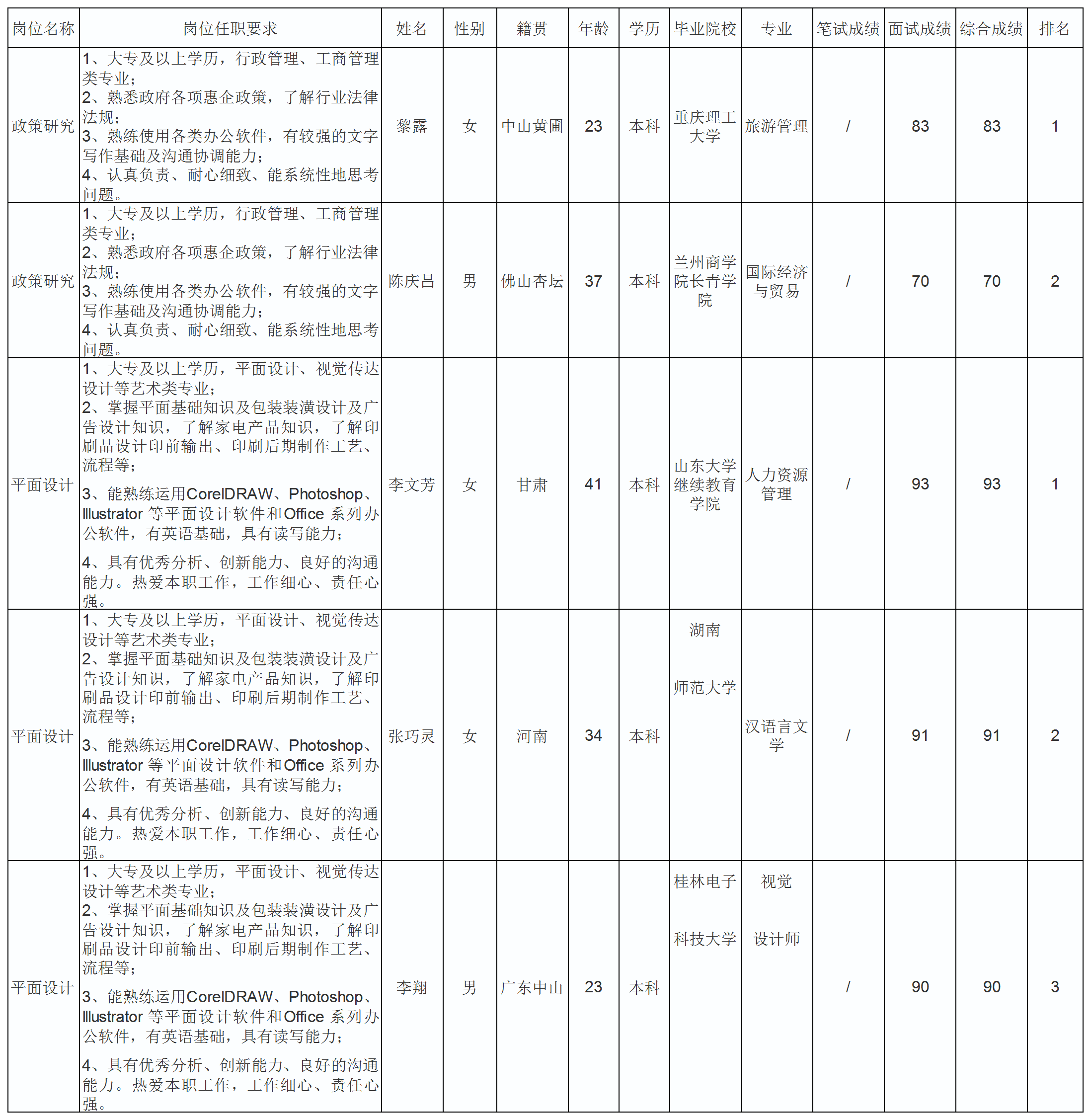 根據(jù)廣東長(zhǎng)虹電子有限公司發(fā)布的招聘公告及招聘相關(guān)規(guī)定,經(jīng)面試等程序,現(xiàn)將面試成績(jī)予以公示。