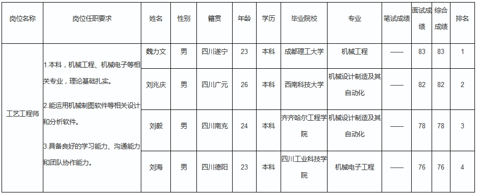 根據(jù)成都微精電機(jī)股份公司發(fā)布的招聘公告及招聘相關(guān)規(guī)定,經(jīng)筆試、面試等程序,現(xiàn)將筆試(面試)成績(jī)予以公示。