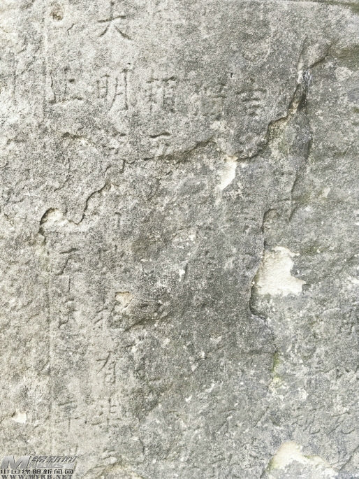 從碑額文字可知,《東山桂香殿碑記》是因修建東山(今富樂山,下同)桂香殿而立。因長期受風雨侵蝕,碑身風化嚴重,多數碑文模糊難以辨認,碑文開頭有“涪陵夙具形勝,四面山光水色”內容,后綴文字因碑身風化而受損。碑文中,能隱約看到“X帝廟”及“原宇隘脆”、“余幼孤”、“建殿三楹”等文字。在碑文倒數第二行,有“大明萬歷四十有七年(1619)”紀年。