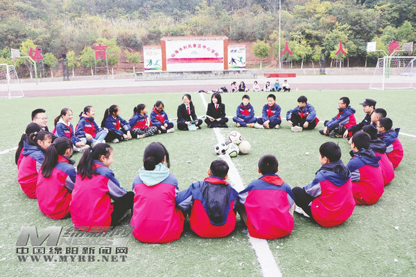 同學(xué)們圍坐在操場(chǎng)上聽法官講法治課