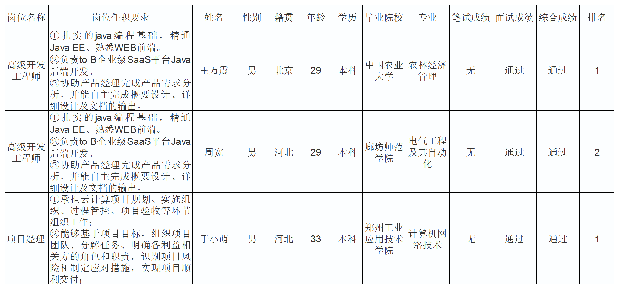 根據(jù)四川長(zhǎng)虹佳華信息產(chǎn)品有限責(zé)任公司發(fā)布的招聘公告及招聘相關(guān)規(guī)定,經(jīng)筆試、面試等程序,現(xiàn)將筆試(面試)成績(jī)予以公示。