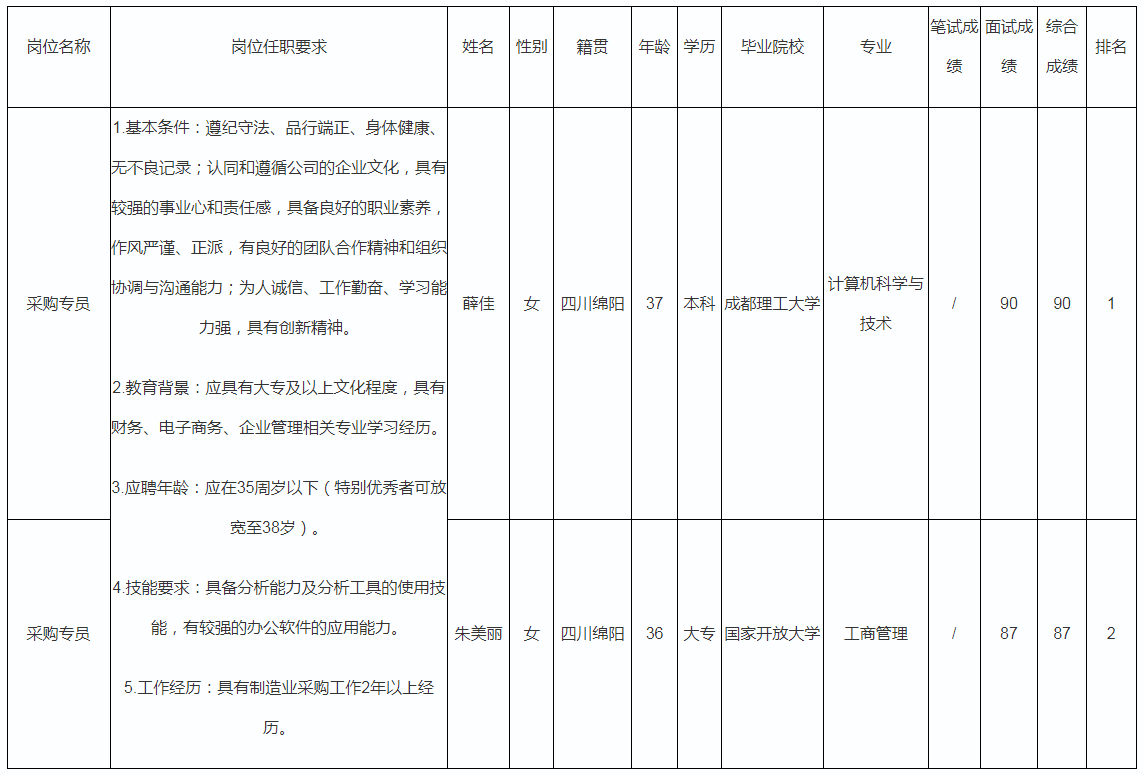 根據(jù)四川九華光子通信技術(shù)有限公司發(fā)布的招聘公告及招聘相關(guān)規(guī)定,經(jīng)面試程序,現(xiàn)將面試成績予以公示。