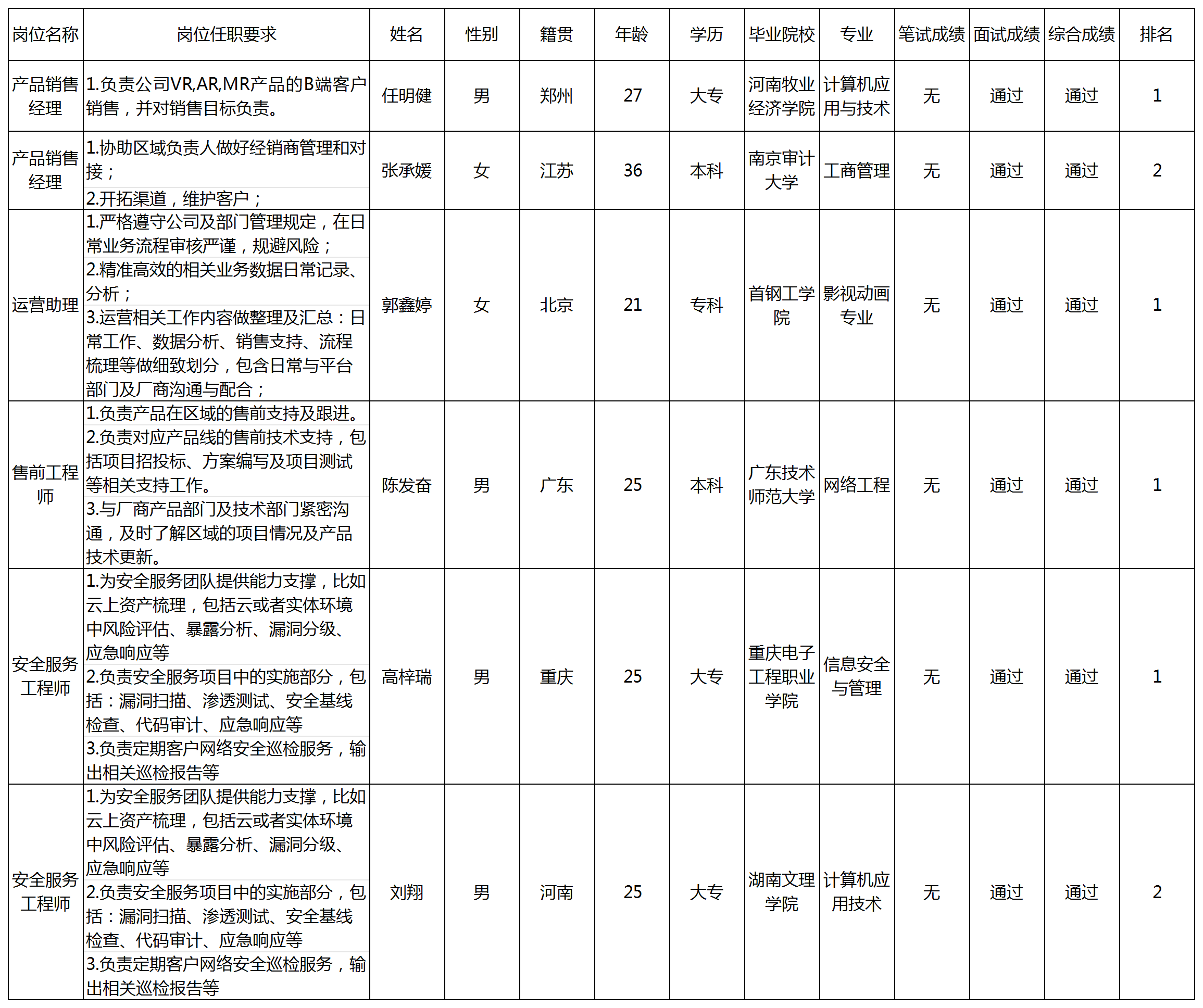 根據(jù)四川長虹佳華信息產(chǎn)品有限責(zé)任公司發(fā)布的招聘公告及招聘相關(guān)規(guī)定,經(jīng)筆試、面試等程序,現(xiàn)將筆試(面試)成績予以公示。