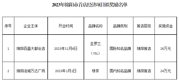 附件:2023年綿陽市首店經(jīng)濟項目擬獎勵名單