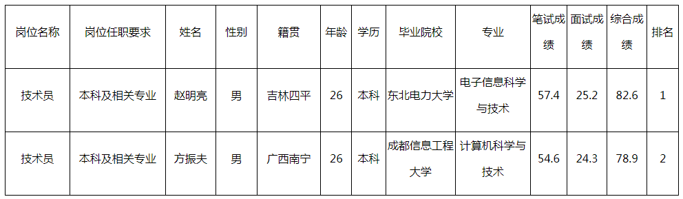根據(jù)零八一電子集團(tuán)四川天源機(jī)械有限公司發(fā)布的招聘公告及招聘相關(guān)規(guī)定,經(jīng)筆試、面試等程序,現(xiàn)將筆試(面試)成績予以公示。