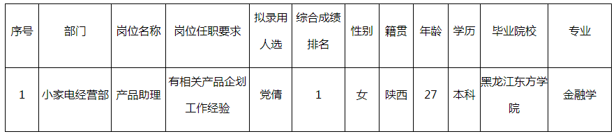 根據(jù)長(zhǎng)虹美菱日電科技有限公司發(fā)布的招聘公告及招聘相關(guān)規(guī)定,經(jīng)面試擬錄用黨倩同志到長(zhǎng)虹美菱日電科技有限公司工作,現(xiàn)予以公示,具體情況如下: