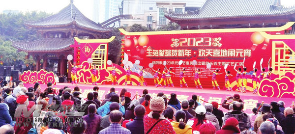 歌舞鬧春,元宵情濃。2月4日,正月十四,綿陽市2023年元宵節(jié)惠民演出暨綿樂薈主題文藝匯演在鐵牛廣場舉行。群眾文藝演出、非遺展示、圖書閱讀服務(wù)等活動,讓市民“一站式”享受到節(jié)日的歡樂和公共文化的福利。