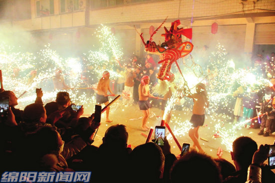 舞火龍鬧元宵(綿報(bào)融媒記者 胥江 攝)