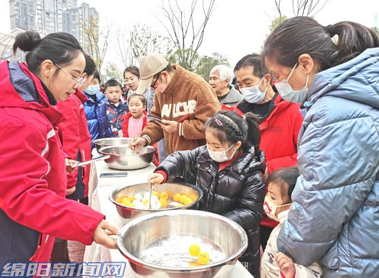 當天,社區(qū)工作人員拿出提前準備好的食材,熱情邀請社區(qū)居民參與包湯圓。揉面、包餡,大家歡聚一堂,分工合作,用嫻熟的手法搓出一個個圓溜溜的湯圓……