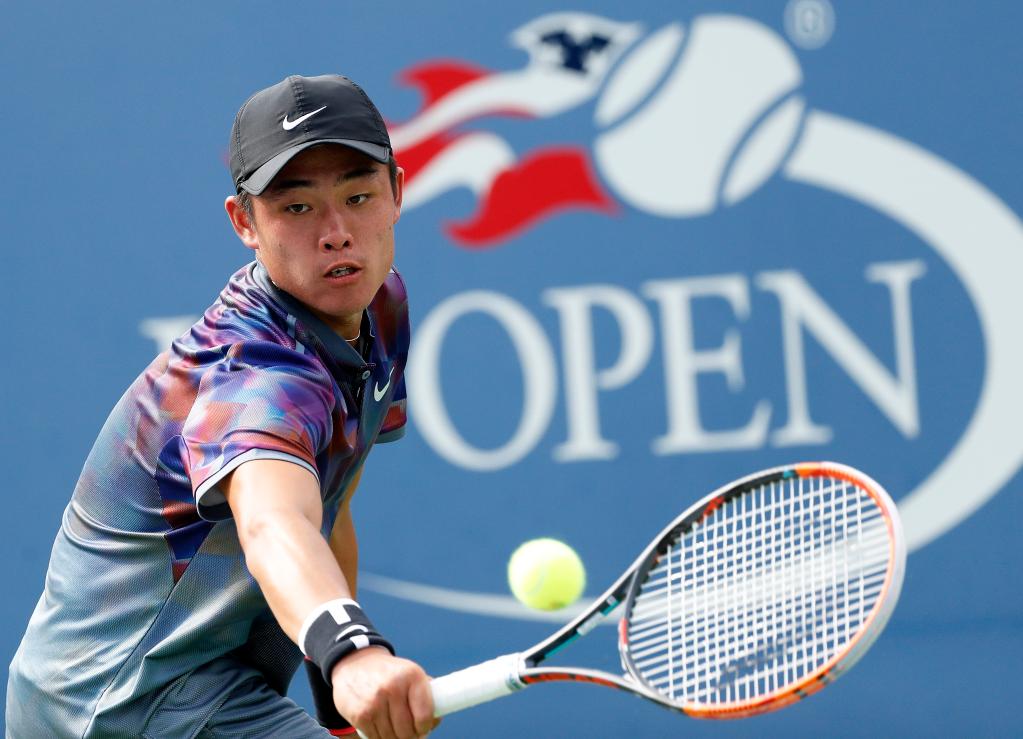 2017年9月10日,吳易昺在2017美國(guó)網(wǎng)球公開賽青少年組男單決賽中戰(zhàn)勝阿根廷選手蓋勒,奪得冠軍。新華社記者秦朗攝