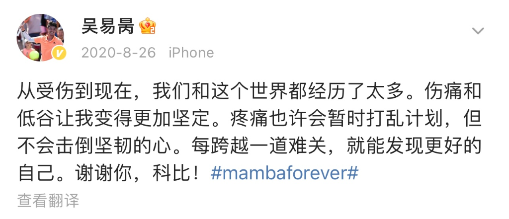 吳易昺用“曼巴精神”激勵(lì)自己。截圖自吳易昺微博